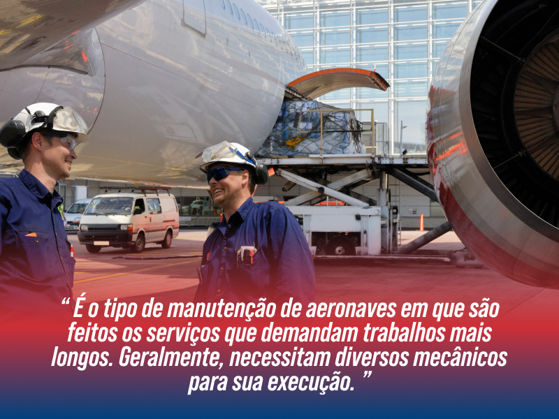 É o tipo de manutenção de aeronaves em que são feitos os serviços que demandam trabalhos mais longos. Geralmente, necessitam diversos mecânicos para sua execução.