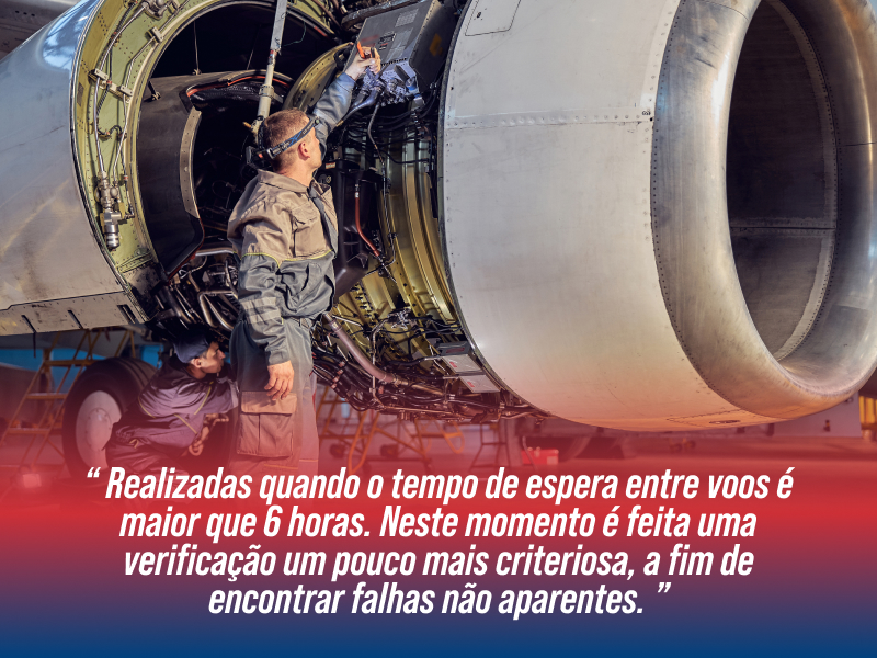 Realizadas quando o tempo de espera entre voos é maior que 6 horas. Neste momento é feita uma verificação um pouco mais criteriosa, a fim de encontrar falhas não aparentes.