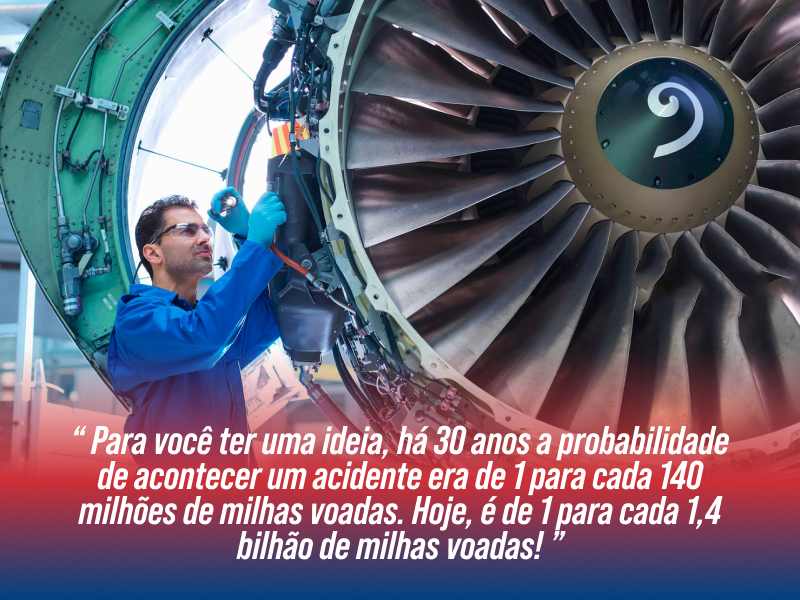 Para você ter uma ideia, há 30 anos a probabilidade de acontecer um acidente era de 1 para cada 140 milhões de milhas voadas. Hoje, é de 1 para cada 1,4 bilhão de milhas voadas!