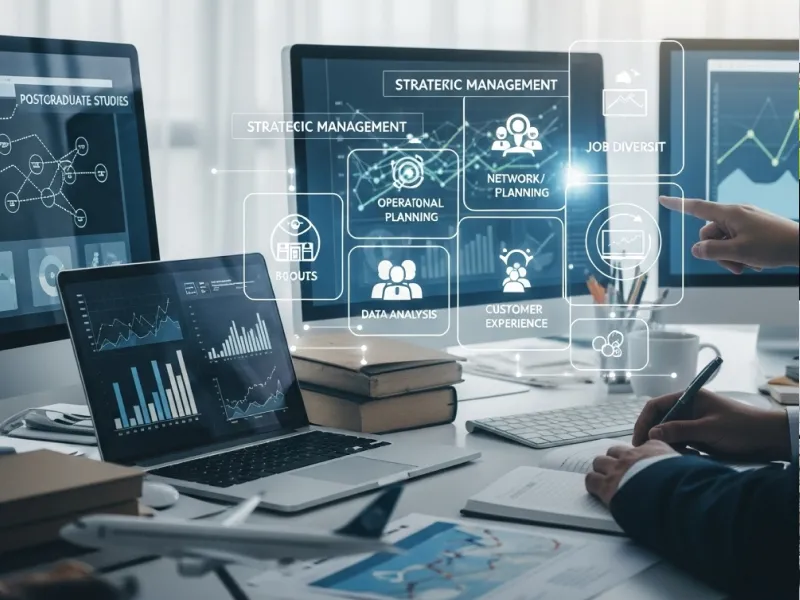- Em gestão de empresas aéreas;