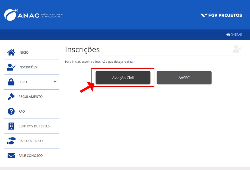 Passo 03: Clique no botão Aviação Civil