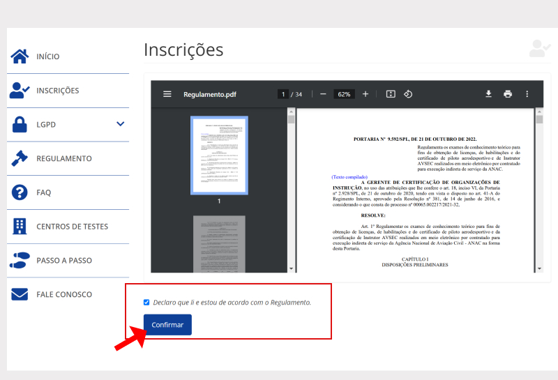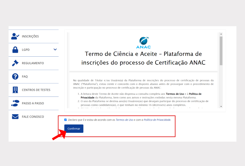 Passo 04: Aceite o Regulamento e o Termo de Ciência e Aceite