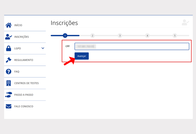 Passo 02: Clique em INSCRIÇÕES