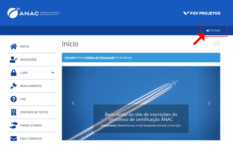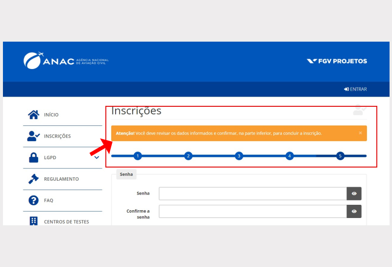 Passo 07: Depois que concluir sua inscrição, clique em ENTRAR e digite os dados do sistema, CPF e senha.