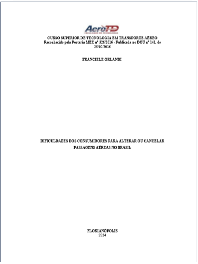 Franciele Orlandi, em sua pesquisa de natureza aplicada, qualitativa e descritiva, analisou dados secundários por meio de uma análise bibliográfica e documental, buscando identificar os desafios enfrentados pelos passageiros.
