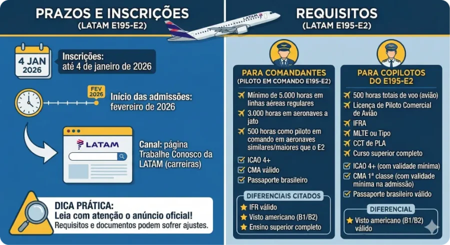 A lógica é simples: a frota chega depois, mas a equipe precisa estar pronta antes. As admissões estão previstas a partir de fevereiro de 2026, justamente para dar tempo de treinamento e padronização antes da chegada do E195-E2 na operação (com entrega prevista para o último trimestre de 2026, segundo as divulgações).
