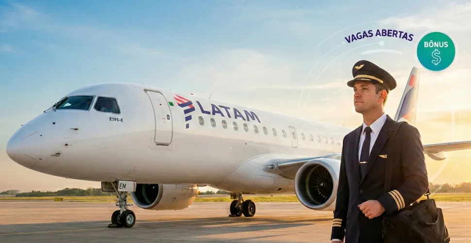 A aviação brasileira entrou em “modo decolagem”: a LATAM anunciou a abertura de inscrições para comandantes e copilotos que irão operar o Embraer E195-E2. E tem um detalhe que chamou muito a atenção do mercado: bônus de contratação pago em parcela única, chegando a R$ 160 mil para comandantes e R$ 80 mil para copilotos.